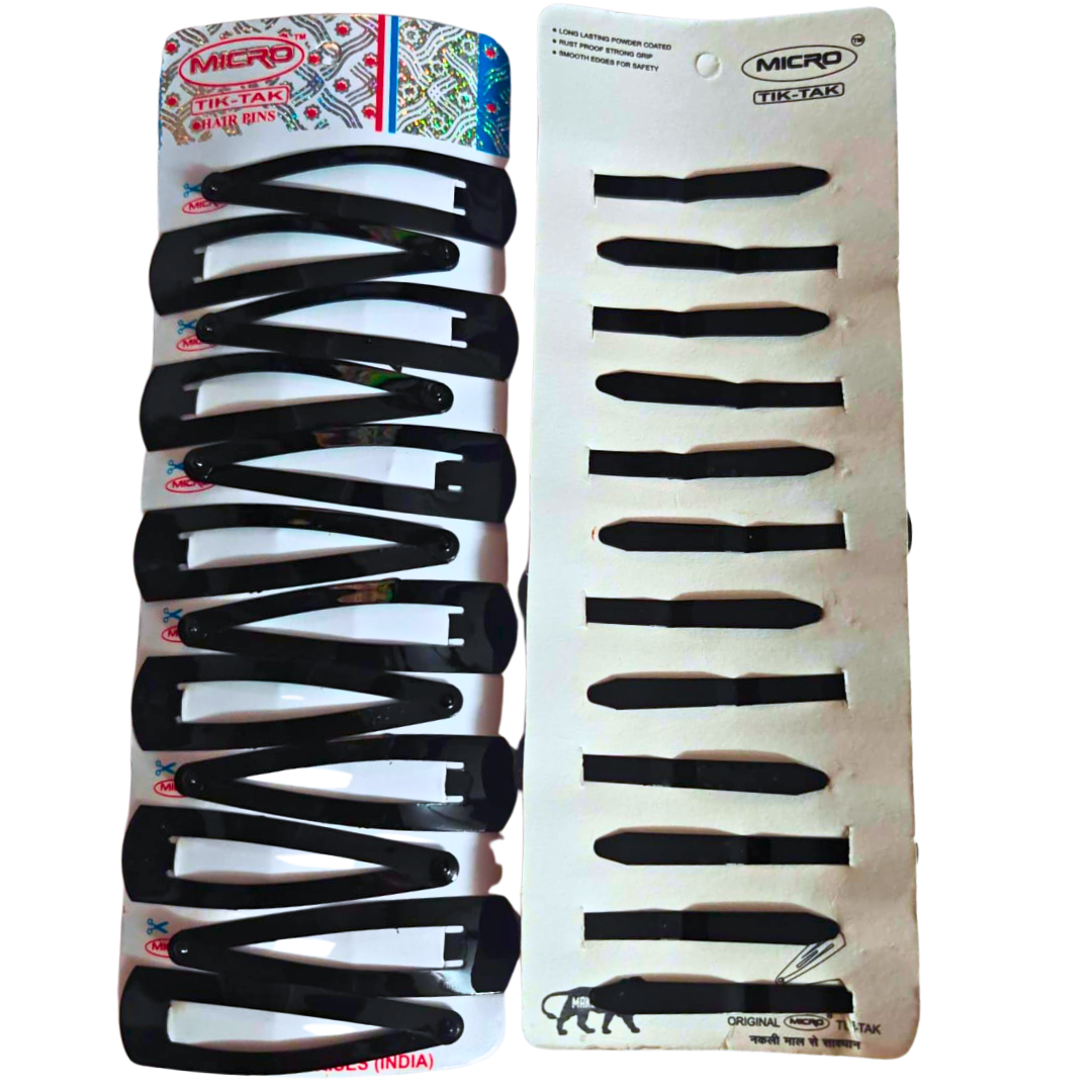 12 x Glossy Shine Black Tic Tac Hair Clips
